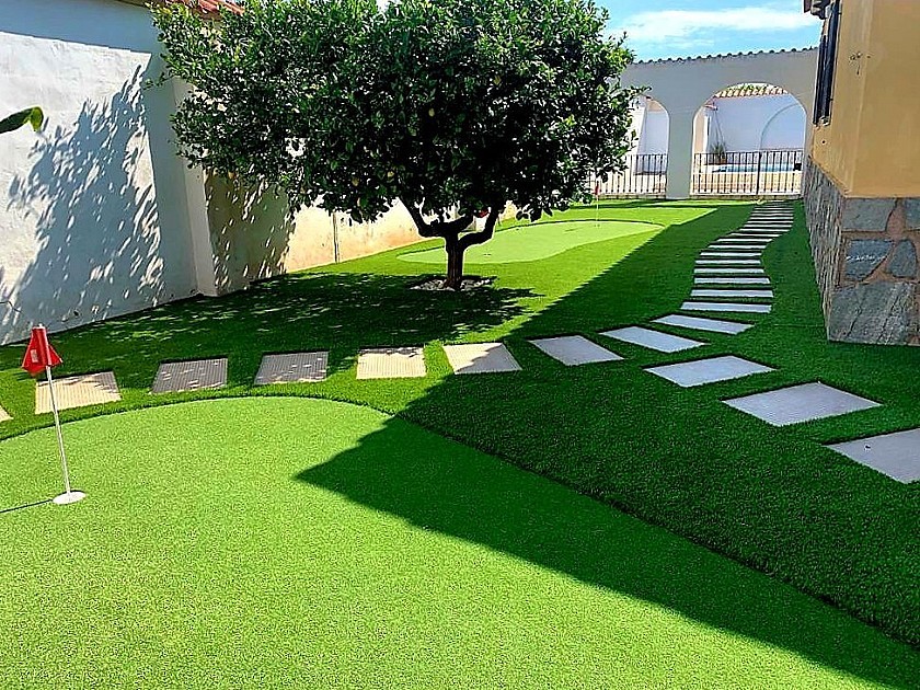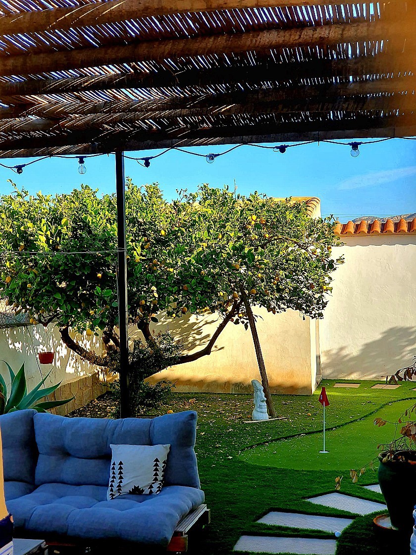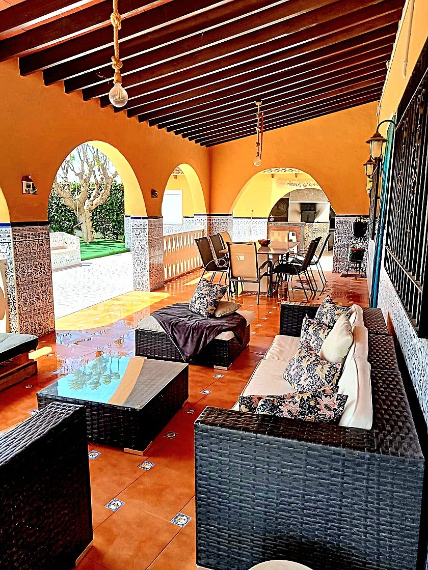 Das elegant eingerichtete und komplett möblierte Haus mit hochwertigen Möbeln ist bezugsfertig. Im Inneren erwarten Sie vier geräumige Doppelschlafzimmer, zwei Badezimmer und ein heller, offener Wohnbereich. Die moderne Küche verfügt über eine Frühstücksbar, viel Stauraum und eine praktische Speisekammer, die nahtlos in das Wohnzimmer übergeht. Eine große überdachte Terrasse erweitert den Wohnbereich nach draußen und bietet den perfekten Ort für Mahlzeiten im Freien mit atemberaubender Aussicht.