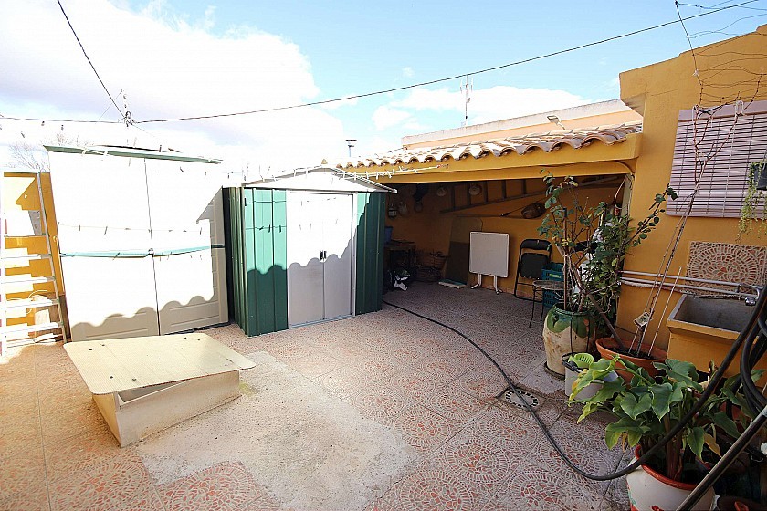 Village House in Casas del Señor, between Monovar and Pinoso. It has 3 bedrooms plus a 4th which comes off the kitchen, ideal for a utility room, and 2 bathroom (1 ensuite). The floor space is 115m², with a 48m² courtyard which also has an outside kitchen/BBQ , storage area and an underground cave perfect for storing wine. Inside is also a lounge-dining room with a fireplace, and a room upstairs used as a cozy lounge for movies and music. Recently reformed, sold furnished, with mains water and electricity. Walking distance to bars, restaurants and a couple of shops. 10 minute drive to Pinoso or Monovar, 40 minutes to the airport and beaches. Potential to buy the plot next door which also belongs to them, to build another house or to extend, for a B&B for example.