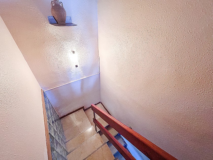 The house includes six spacious bedrooms, all equipped with central heating powered by diesel, and several with built-in wardrobes and ceiling fans. Double-glazed windows provide excellent thermal and acoustic insulation, ensuring comfort throughout the year. On the ground floor, the air conditioning system adds extra convenience during the warmer months.