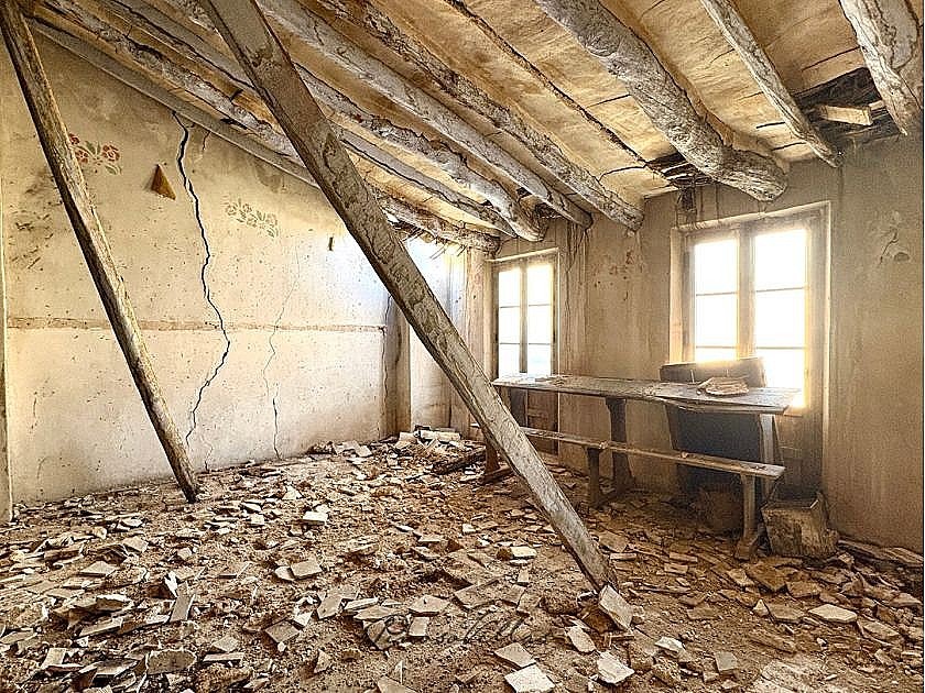 It’s in a very good location in the centre of the village, and has a large courtyard and a cellar, but no electricity or drinking water.