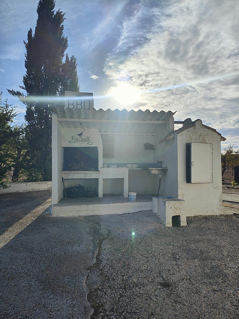 Outside, the house sits on an impressive 65,000 m² plot, offering endless possibilities. It features a private swimming pool, outdoor barbecue area, a practical covered summer kitchen (marquesina) ideal for family gatherings and outdoor dining, as well as a 40 m² garage or storage building, with an attached carport, perfect for vehicles, storage, or workshop use.