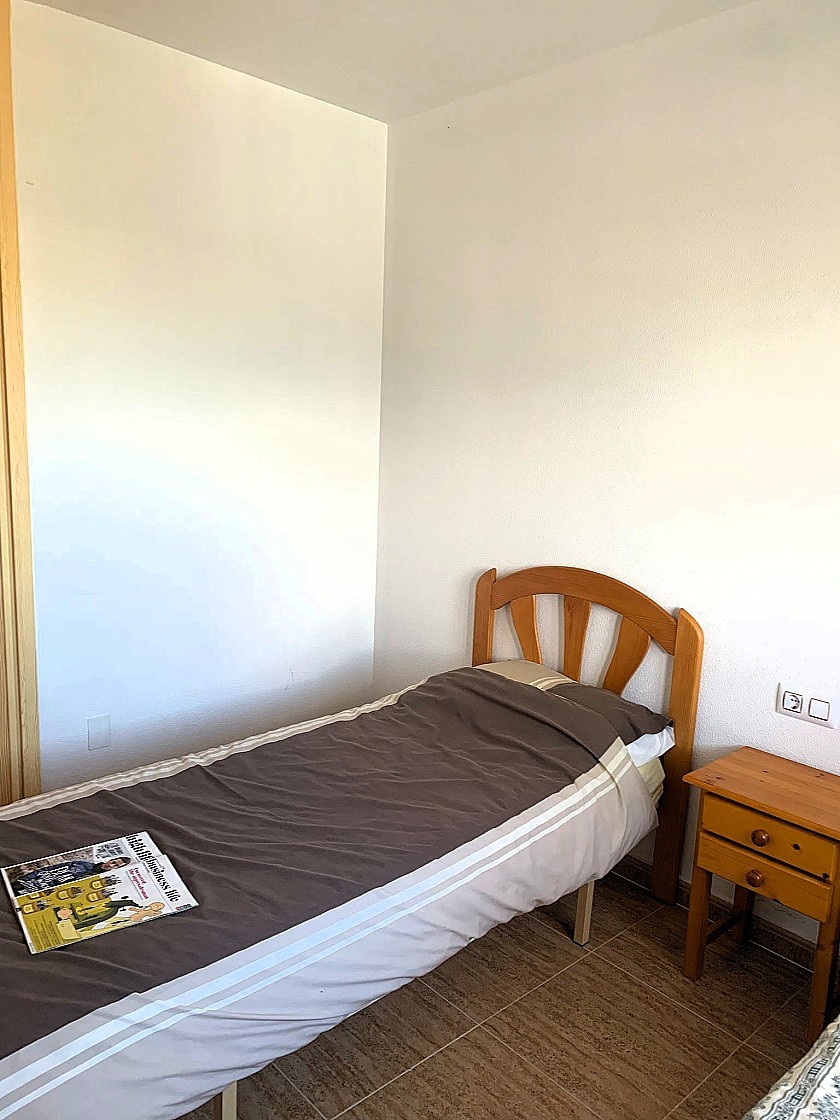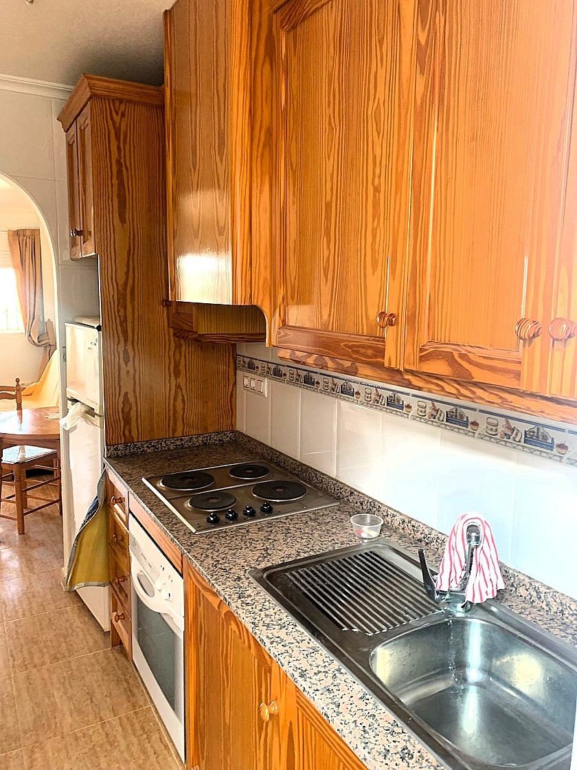 La propiedad consta de dos dormitorios, un baño familiar y un amplio salón-comedor. También dispone de una moderna cocina totalmente equipada con lavadero independiente. Unas escaleras interiores conducen a un amplio solárium privado en la azotea, perfecto para disfrutar del sol y entretenerse.