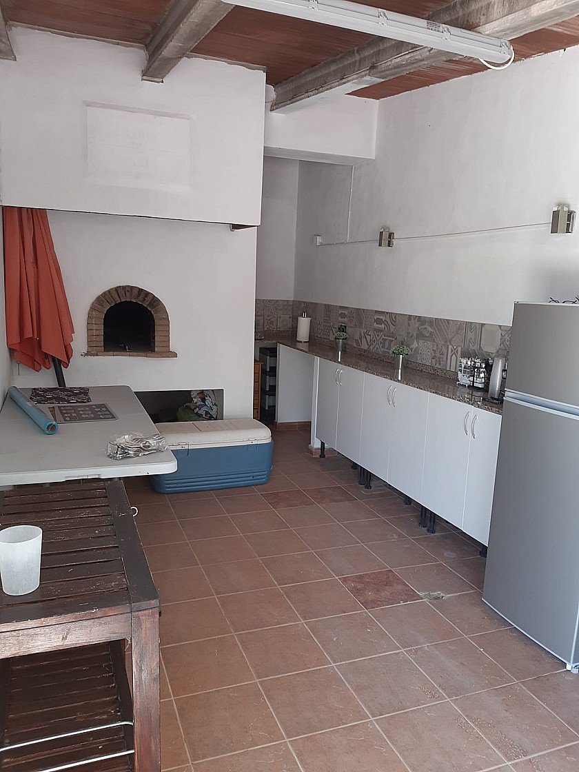 A l'extérieur se trouve le garage double avec porte électrique, plus une très grande cuisine d'été avec salle de bain et débarras séparé (ou une 5ème chambre) plus une cuisine équipée. Ici, il y a aussi la climatisation réversible et le chauffage central, une porte d'ici mène au jardin avec une impressionnante piscine de 12x8 avec cascade et jacuzzi, plus un système d'eau salée.