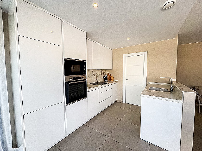 Luxe keuken met Bosch-apparatuur, vaatwasser, koel-vriescombinatie en hoogwaardige werkbladen