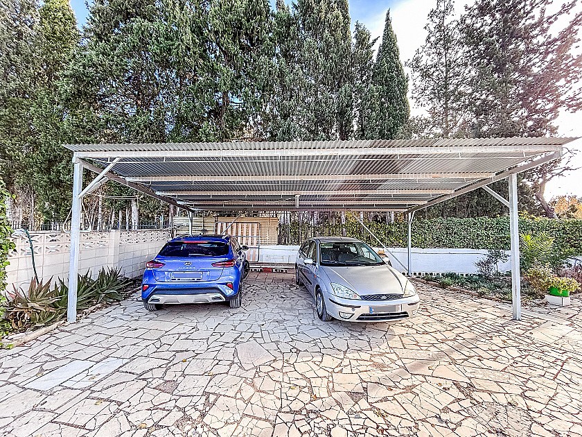 Buiten beschikt de woning over een privézwembad van 10 x 4 meter, ideaal voor het genieten van het mediterrane klimaat. Daarnaast bevindt zich op het hoofdperceel een carport voor drie auto’s, een barbecuezone, en ruime buitenruimte die naar wens kan worden ingericht. De villa is aangesloten op leidingwater, heeft putwater voor irrigatie en aansluiting op het elektriciteitsnet, wat zorgt voor comfort en zelfstandigheid.