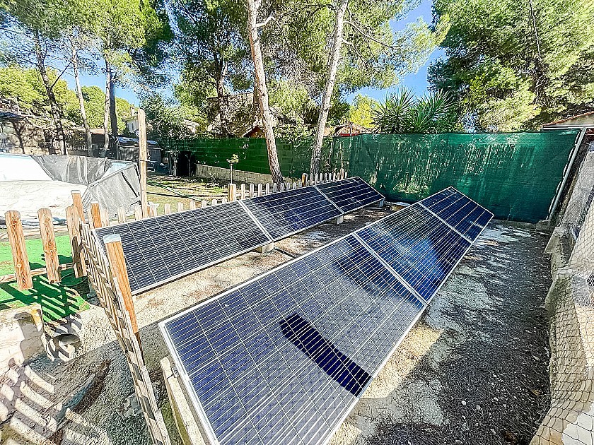 Wat betreft voorzieningen beschikt de woning over drinkwater van het openbare netwerk en een zonne-energiesysteem met zonnepanelen, wat energiekosten verlaagt en zelfvoorzienendheid verhoogt.